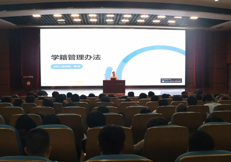 为教育引导2025级新生树立崇高理想信念、励志成长成才,促进新生全面了解材料工程学院,尽快适应新环境、新阶段、新生活,9月14日,材料工程学院举行了2025级新生入学教育大会,材料工程学院党总支副书记潘逸、副院长周凯、全体辅导员和2025级新生参加此次大会。