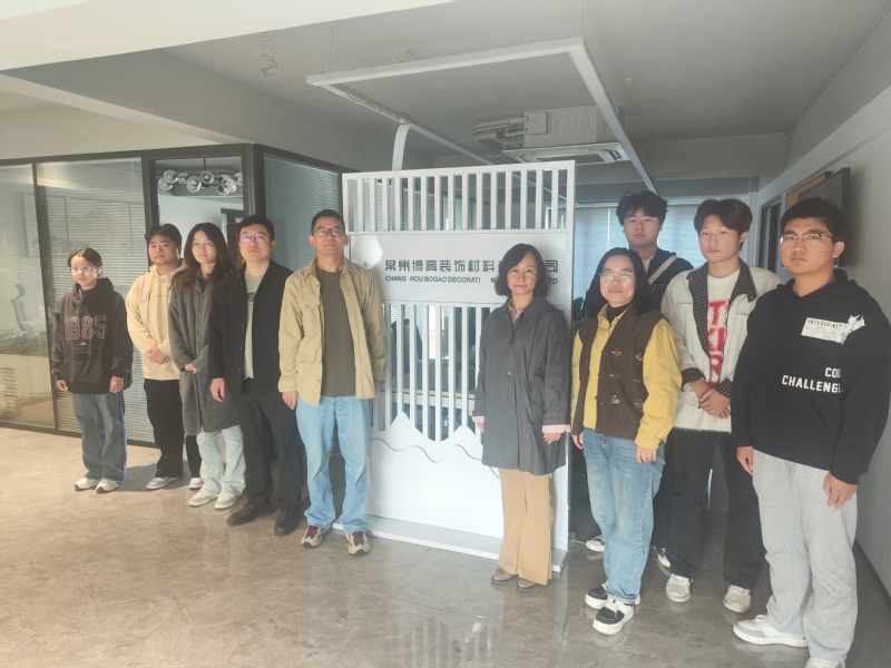 23 日上午,师生一行走访常州博高装饰材料有限公司,与负责人、优秀校友郑彬深入交流。郑彬接待师生并参观生产线、产品展厅,讲解装饰材料研发、生产流程与市场前景。座谈会上,他结合创业经历分析行业就业形势与机遇,愿接收母校学生实习;嵇天培感谢其支持,强调学院将持续加强与校友企业合作,拓宽学生实习就业渠道。期间,学生积极咨询岗位与实习内容,部分学生凭扎实专业基础与积极态度获认可,双方达成实习意向。