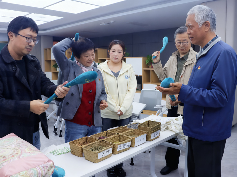 活动现场,本草社学生向三位老同志展示了自主研发的中药养生锤、中药枕等文创产品。学生结合人体经络图,详细讲解了艾草、薰衣草等药材的配伍原理及功效,现场演示穴位按摩手法。张燏试用中药养生锤后,对学生的创新设计给予高度评价:“将传统药材与现代工艺结合,既弘扬了中医药文化,又体现了青年学子的实践智慧。”金华仁、赵吕明还与学生互动体验了辨识药材、调配比例等环节,感受“药食同源”的文化魅力。三位老同志分别与家庭困难学生结对帮扶,现场互留联系方式。三位老同志结合自身经历,勉励学生扎根专业、服务社会。
