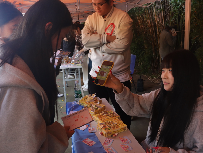 趣味互动环节更添活动活力:“视频猜经典语录”前,同学们围站在屏幕前,随着片段播放同步抢答台词,答对后的欢呼与盲盒抽取的期待交织成现场的欢快节奏;不少同学举起手机记录招新瞬间,完成“活动打卡拍照”任务后解锁额外抽奖机会;“刮刮乐抽奖”区不时传来惊喜的呼声,盲盒、便签等奖品让参与感与获得感拉满,也让更多人记住了这个充满创意与温度的社团。