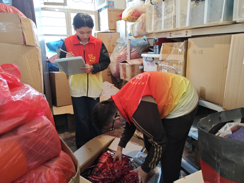 活动当天,志愿者们准时抵达一加爱心社的仓库。面对种类繁多、数量庞大的捐赠物资,志愿者们迅速投入工作,展现出高度的热情与责任感。大家分工明确,配合默契:有的负责将物资进行分类归纳,使物品摆放井然有序;有的负责仔细清点各类物料数量,并认真记录在册;还有的负责清扫仓库卫生,清理积尘,为物资创造一个干净整洁的存储空间。经过数小时的辛勤劳动,原本略显杂乱的仓库变得井井有条,物资清单也一目了然,极大地便利了爱心社后续物资的精准发放与管理。
