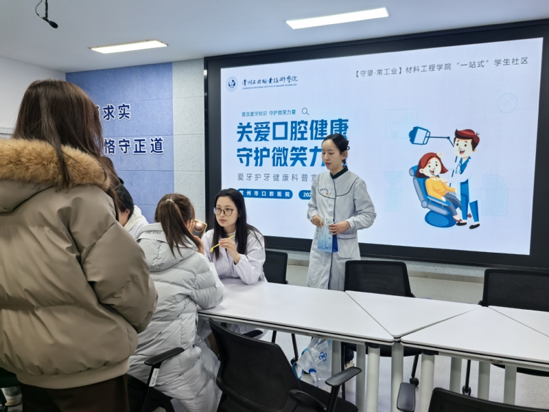 为进一步提升广大师生口腔健康意识,培养科学护齿习惯,12月17日,材料工程学院邀请常州市口腔医院专家团队走进“一站式”学生社区开展“关爱口腔健康 守护微笑力量”主题宣讲活动。本次活动旨在增强学生对口腔疾病的科学认知,引导其养成健康生活习惯。