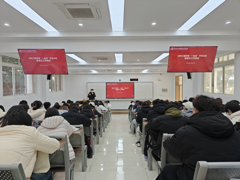 为进一步加强学生宿舍管理,营造安全、文明、和谐的社区环境,材料工程学院“一站式”学生社区于12月17日组织召开全体学生宿舍长工作例会。学院辅导员周宇以及各年级宿舍长共同参加了本次会议。会议旨在明确宿舍长职责,传达最新管理要求,并部署下一阶段宿舍文明建设的重点工作。