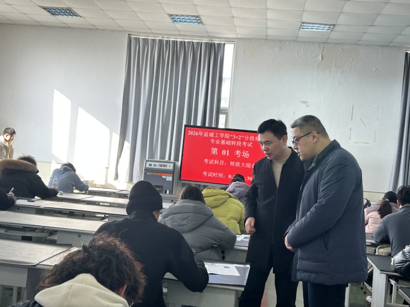 为强化联合培养本科层次技术技能型人才培养质量监控,规范考试管理,1月14日上午,盐城工学院教务处副处长孔剑锋、材料学院教学院长王金山、材料学院专业系主任张峰、教务科余志卫、王艳芳一行5人来我校开展期末巡考及交流工作。