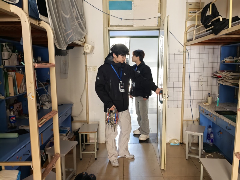本次检查工作重点突出、细致全面。检查人员深入各学生宿舍,逐一排查安全隐患。在安全方面,着重检查了宿舍门窗是否完好并已关闭锁牢,水电开关、插座及电器设备是否已完全断电,阳台门是否关闭固定,确保无消防、盗窃等安全风险。同时,对宿舍内部及公共区域的卫生状况进行了巡查,提醒尚未离校的同学及时清理生活垃圾,保持环境整洁,防范病菌滋生。检查过程中,学生干部们认真记录,对发现的问题及时提醒并协助现场整改,对于已离校宿舍存在的个别疏漏,也进行了统一登记上报。