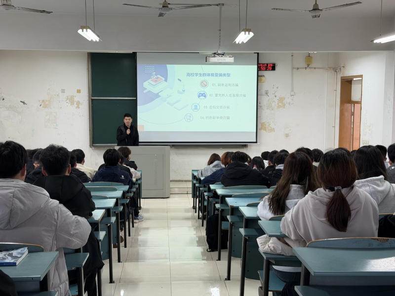 讲座伊始,高强以近期高校真实发生的典型案例为切入点,通过以案说法的形式,系统剖析了电信网络诈骗的作案手法与心理诱导机制。他重点围绕游戏交易诈骗、虚假购物陷阱、账号买卖骗局、熟人身份冒用、兼职刷单诱饵、裸聊敲诈勒索六大高发诈骗类型,结合大学生群体的行为特点与消费习惯,逐类拆解诈骗话术逻辑与资金转移路径,帮助学生建立事前识别、事中阻断、事后报案的全链条防范意识。