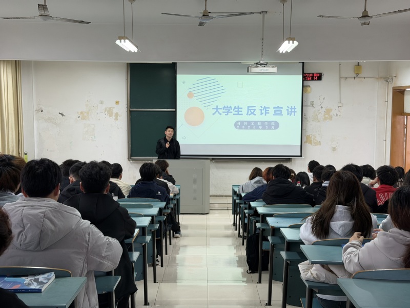 为深入贯彻落实校园安全教育工作,有效遏制电信网络诈骗案件向校园渗透,切实提升学生识骗防骗能力,3月30日,材料工程学院开展反诈宣传主题讲座。本次讲座由学院辅导员高强担任主讲,全体反诈宣传员参加学习。
